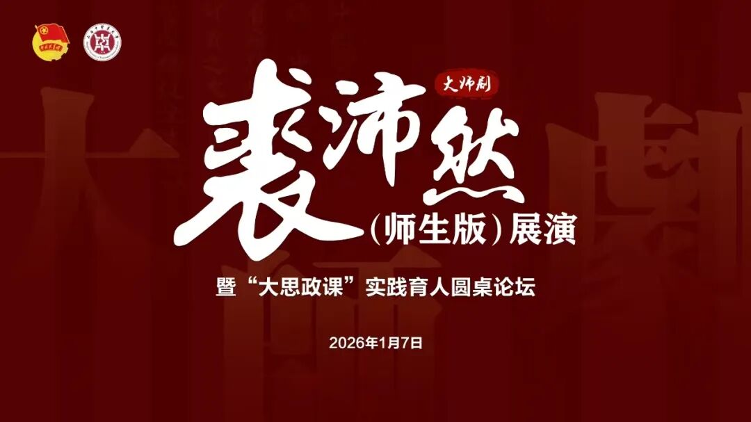 2026年1月7日下午13:30,大师剧《裘沛然》(师生版)展演暨“大思政课”实践育人圆桌沙龙分享会将在上海中医药大学学生生活园区海艺剧场举行。