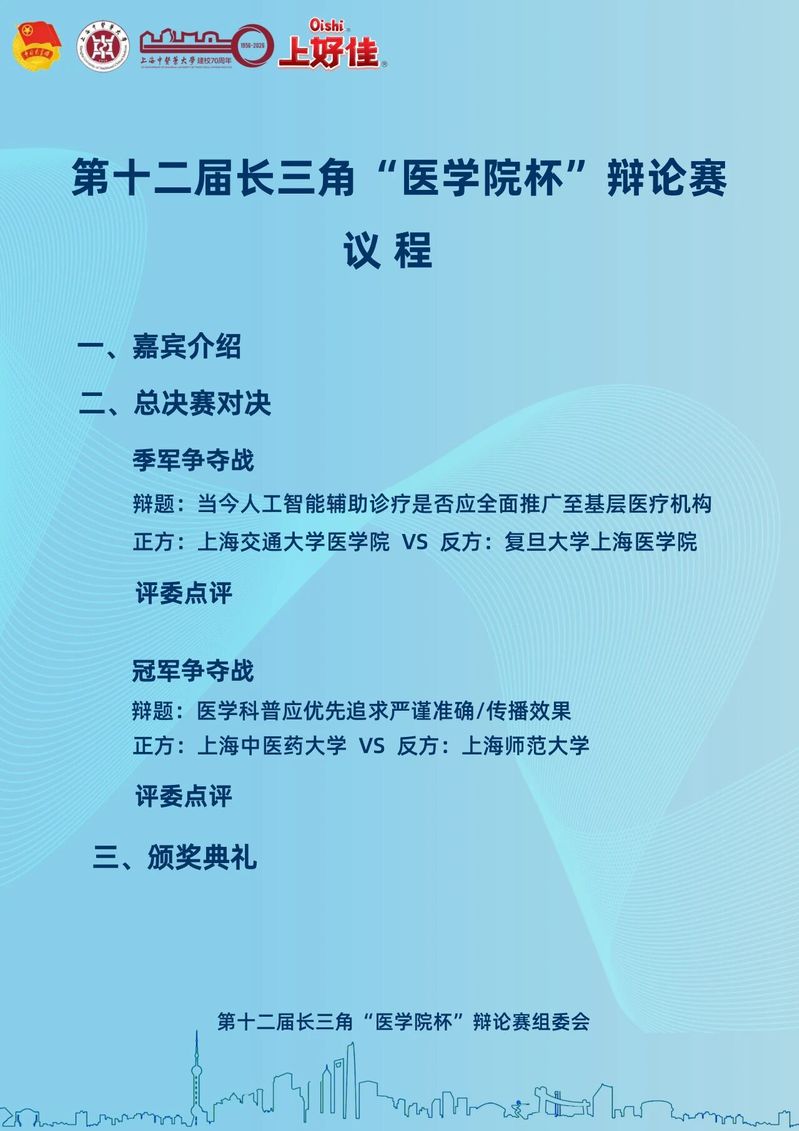 第十二届长三角“医学院杯”辩论赛自2026年1月开赛以来,吸引了来自长三角地区:复旦大学、上海交通大学医学院、上海中医药大学、上海师范大学等多所学校的同学参赛,经过初赛、复赛,将于2026年3月开展决赛。