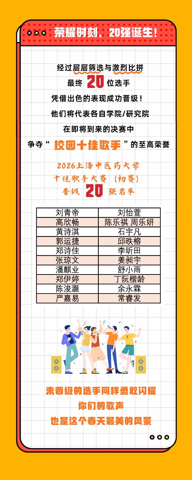 20强诞生!上海中医药大学2026年十佳歌手大赛(初赛)高燃回顾
