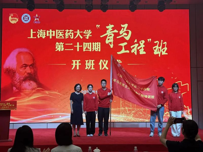 孟煜为第二十四期青马班学员代表授旗,上海中医药大学第二十四期“青年马克思主义者培养工程”班正式开班。