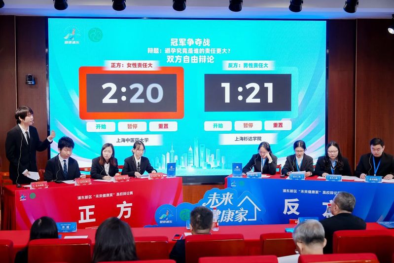 11月21日,由浦东新区爱国卫生运动和健康促进指导中心和上海市浦东新区计划生育协会主办的2025年浦东新区“未来健康家”高校辩论赛决赛在上海杉达学院举行。由我校辩论社骨干同学组成的上海中医药大学代表队参加本次大赛。