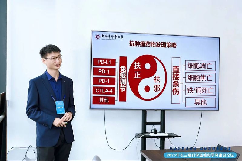 为了让中医药在分子层面被世界看见,于典平同学立志用现代科学方法揭示中药机制。他首次发现蜘蛛香中活性成分可以诱导铁死亡,为结直肠癌治疗提供了新候选药物,成果发表于国际顶刊;他合作研究的小檗碱衍生物抗肿瘤机制成果成为《Advanced Science》封面文章;海洋天然产物Benzosceptrin C调控PD-L1降解的研究成果成为ESI前1% 高被引论文。同时,他更注重“临床—实验室—临床”的闭环探索。作为全国中医药院校首位“罗氏大学研究基金”获得者,他主持探索中药干预结直肠癌的新机制与新路径,成果荣获上海市优秀发明选拔赛优秀创新金奖。